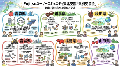 2025年度、Fujitsuユーザーコミュニティ東北支部では、地域企業同士のつながり強化と会員企業の本業への貢献を目的に、東北6県それぞれで「県別交流会」を開催しました。