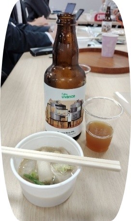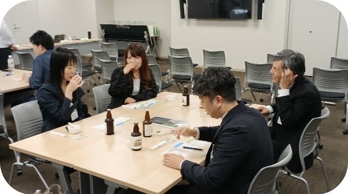 講演の後の体験セッションでは、山中様の一番の自信作「ごま豆乳鍋」つゆを使った鍋料理と、富士通のAIビール(「IPA」のUvanceバージョン)を参加者全員に試食いただき、それぞれに対するご意見、ご感想をいただきました。これもまた新たなデータとして今後活用されていくことでしょう。